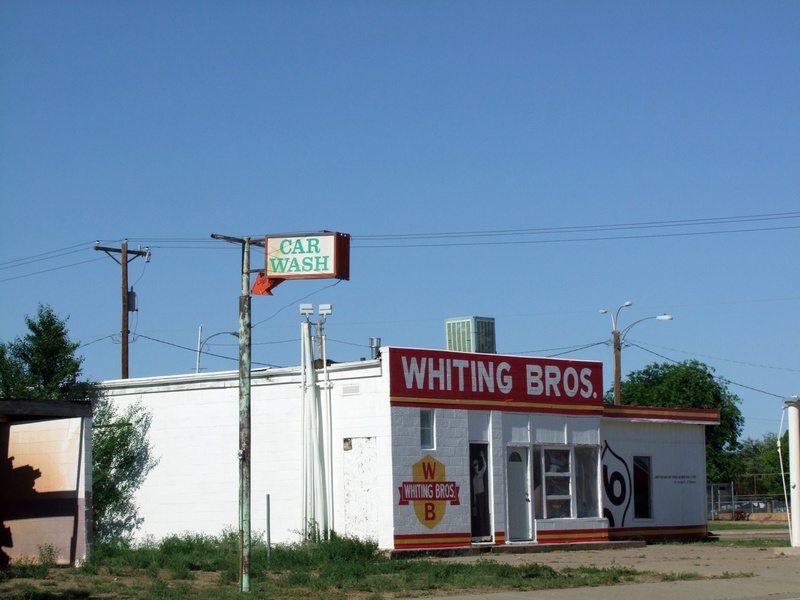 An old station on Route 66 in Tucumcari, New Mexico dressed as a Whiting Bros station.